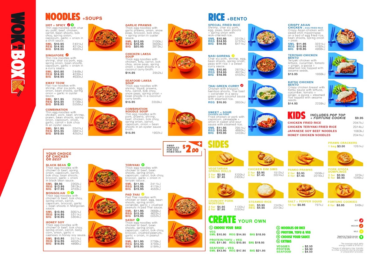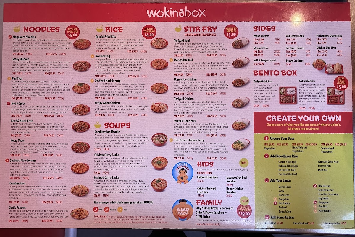 Wokinabox, nestled in Osborne Park, WA, serves vibrant Asian fast food that's both comforting and exciting. Their menu highlights include value-packed meal boxes, ideal for solo diners, couples, or families, each paired with crisp spring rolls and refreshing drinks. Standouts are the Crispy Asian Chicken varieties—ranging from classic mayo to bold spicy and garlic soy flavors—always served with wok-charred egg fried rice, delivering satisfying textures and rich umami notes.